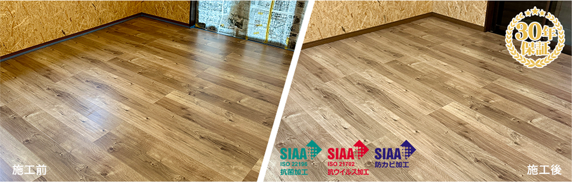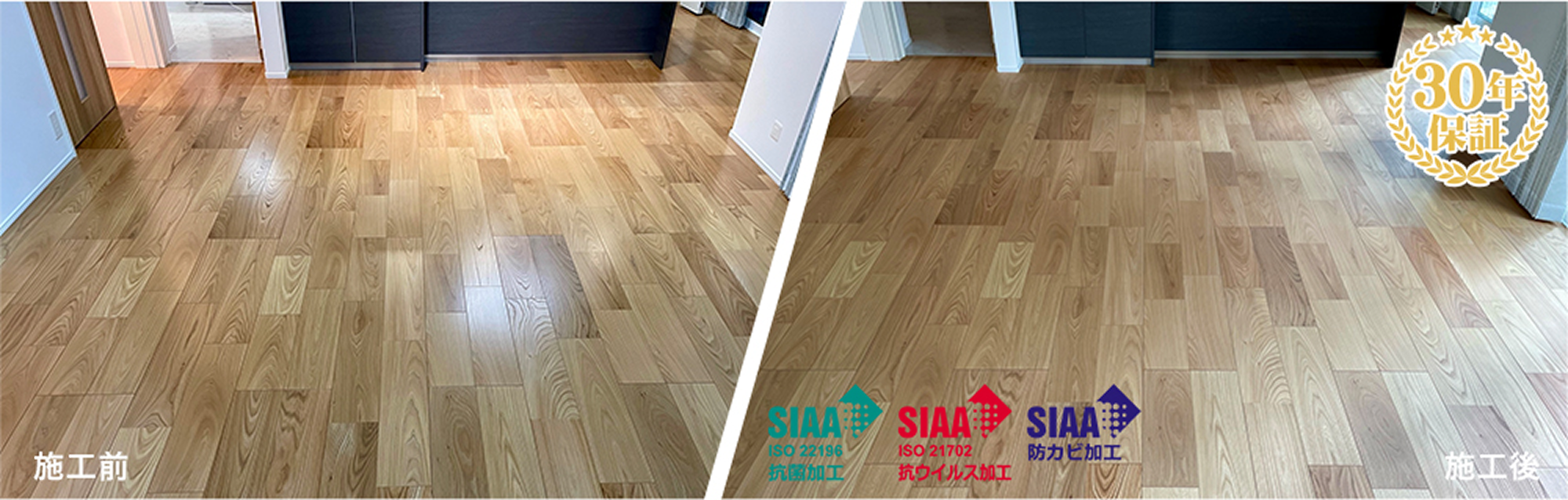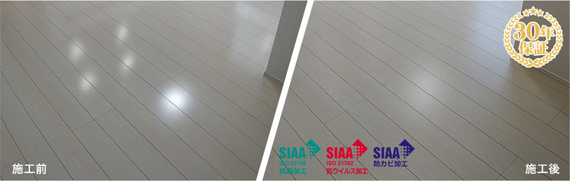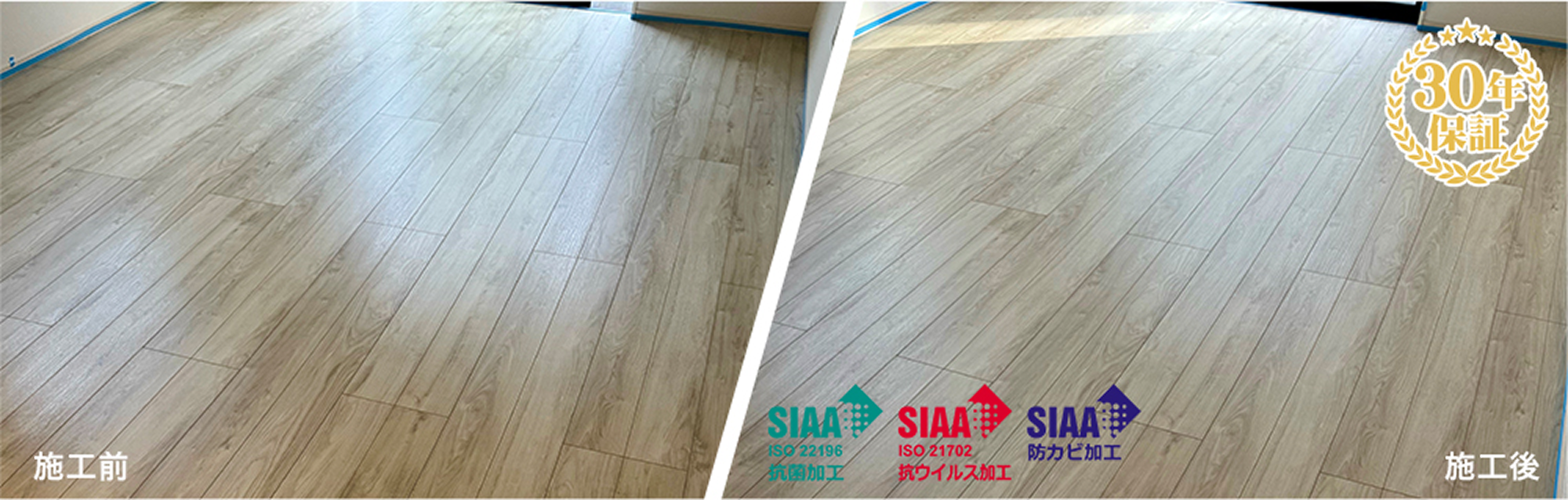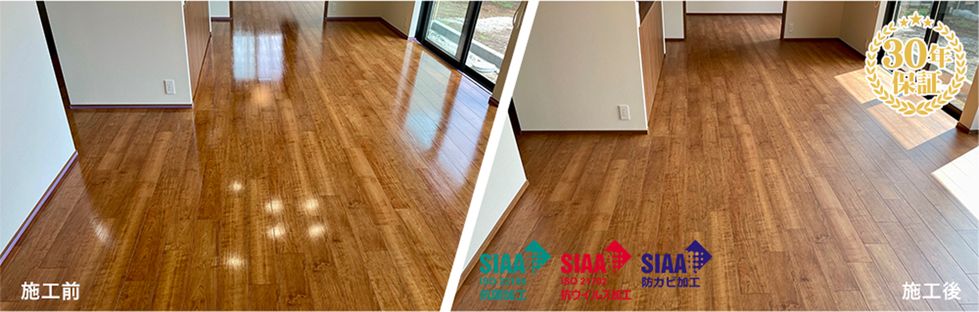 ワンニャンすべらんは、フローリング材が使用されてる床材を人もペットも快適に一緒に生活できる床材へ変身させることのできるフロアコーティングです。