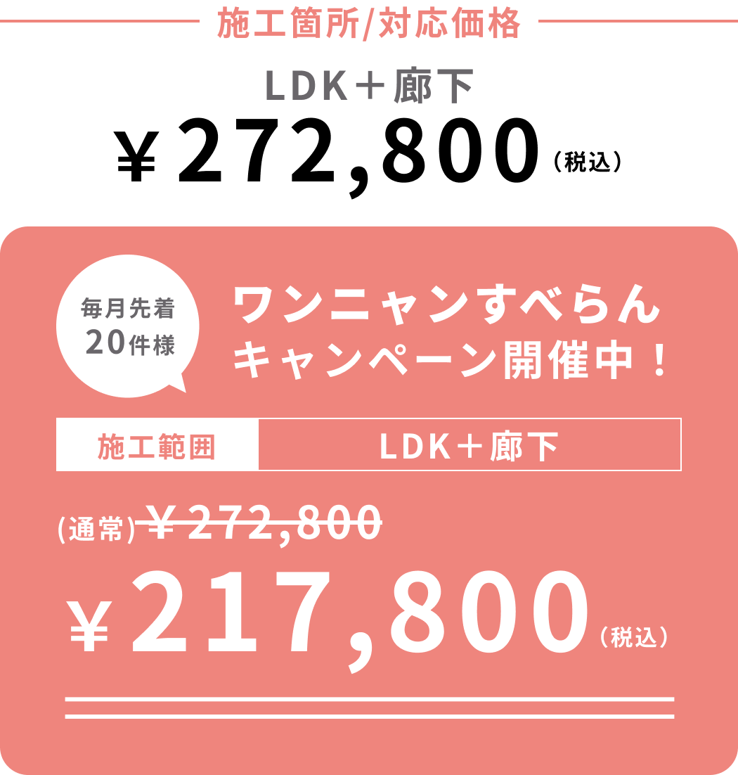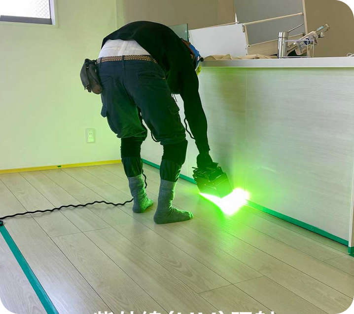床の広さや状態にもよりますが、一般的な1LDK〜2LDKの住宅であれば、1日〜2日程度で完了します。詳細はお見積り時にご案内いたします。