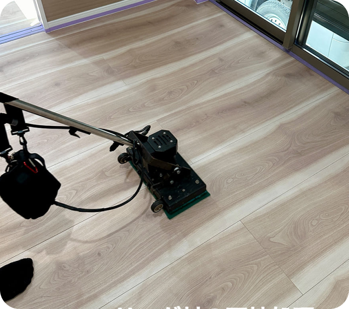 コーティング前に、フロアのホコリや汚れをしっかり除去し、ムラのない美しい仕上がりを目指します。